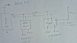O ESP32 controla via I²C (ajustando frequência, volume e até RDS (Radio Data System) ).