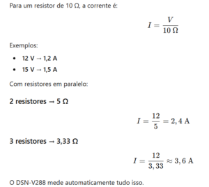 🔹 Saída – da fonte → Resistores → Shunt interno do DSN-V288 → Saída –