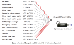 Observe abaixo as faixas de frequências normalmente usadas pelo mundo, que o dongle SDR pode atuar.